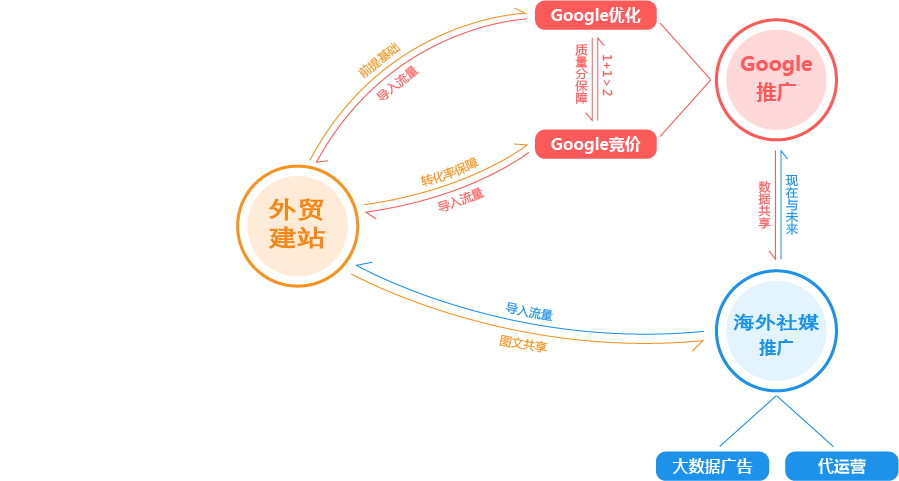 昆明外贸推广公司为您提供全面的“整合”方案,为您的企业提供全生命周期的精细化服务和咨询。为此,我们搭建了从广告投放到SEO优化,从内容运营到网站开发,从品牌策划到电商运营的近100人的团队,组成了一家集全球渠道资源、人才资源、技术资源为一体的数字营销机构,为您一站式解决出海难题,实现品牌全球推广!